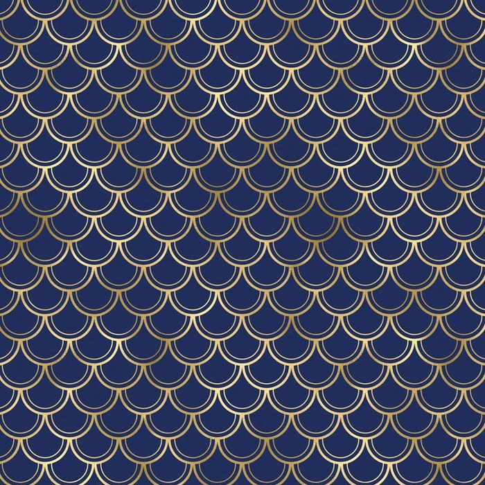 GOLDENE SCHUPPEN M.2 (GOLDENER OZEAN) / dunkelblau- Polster- Velours