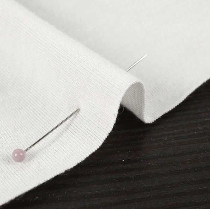 Highest quality single bearing knit fabric (both sides of the fabric have a smooth surface structure: on the right side there are columns visible along the material, on the left side you can see the crosswise running knit stitches) with elastane.