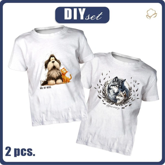 2-PACK - KID’S T-SHIRT - CUTE ANIMALS pat.2 - sewing set (104/110)