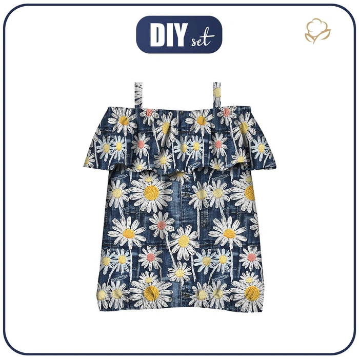Bardot neckline blouse (SARA) - DAISIES DENIM IMITATION WZ. 1 - 134-140