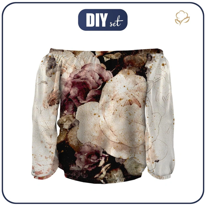 Bardot neckline blouse (SOFIA) - WATERCOLOR FLOWERS PAT. 4 - sewing set XL
