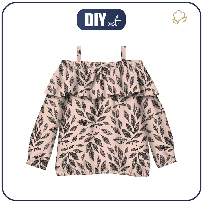 Bardot neckline blouse (VIKI) - BLACK LEAVES - sewing set