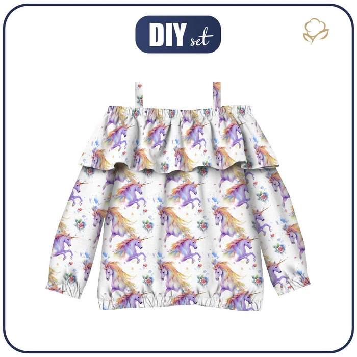 Bardot neckline blouse (VIKI) - FAIRY WORLD pat.14 (UNICORN) - sewing set - 122-128