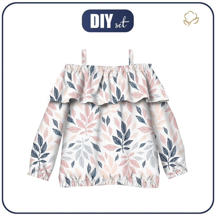 Bardot neckline blouse (VIKI) - PASTEL LEAVES - sewing set
