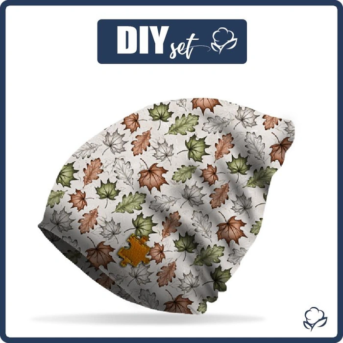 "Beanie" cap - FOREST LEAVES pat. 1 / beige 54-56