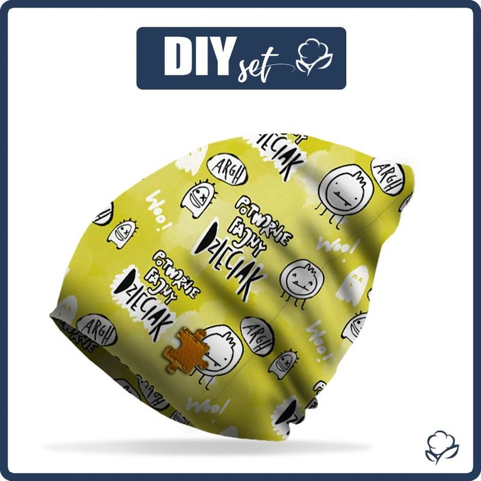 "Beanie" cap - POTWORNIE FAJNY DZIECIAK / YELLOW (SCHOOL DRAWINGS) / Choice of sizes