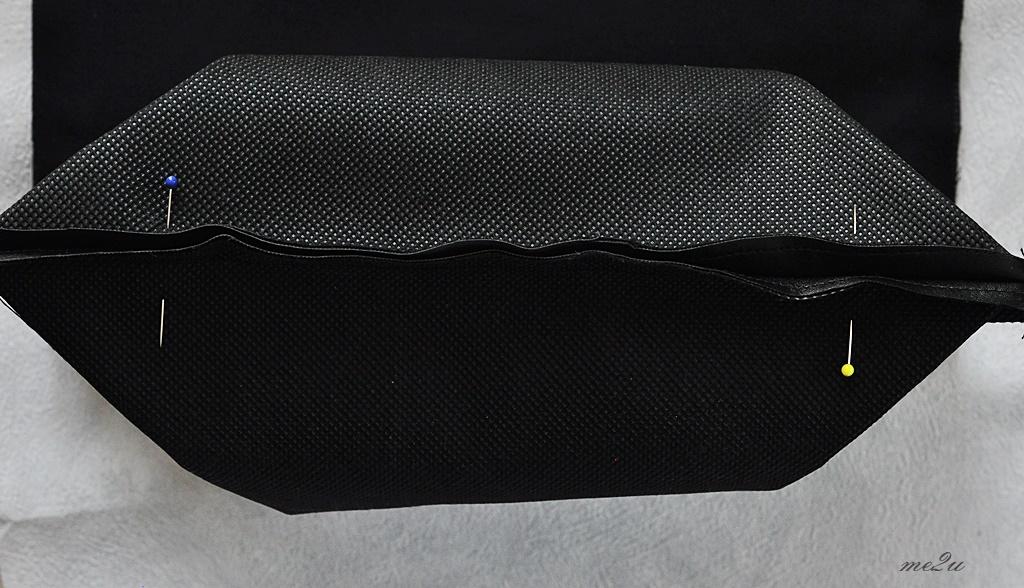 2. Przyszywamy wigofil do lewej strony przodu i tyłu kosmetyczki na 5 mm.