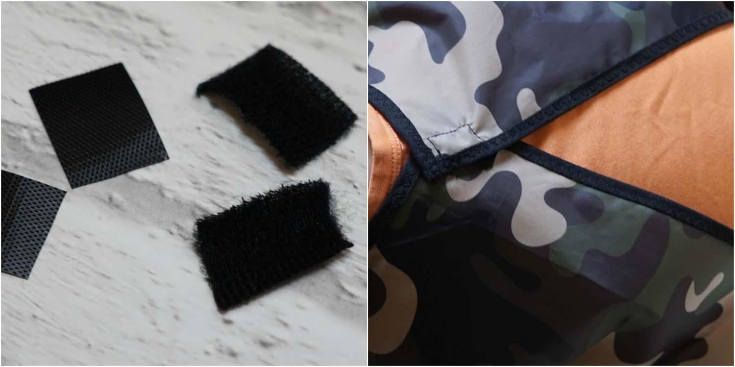 4. Z tyłu u samej góry przyszywamy kwadracik wycięty z niedrapiącego rzepa.