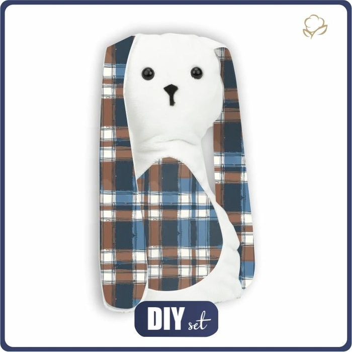 In the set you will find all necessary products for sewing a bunny mascot. All parts are packed in a cardboard box.