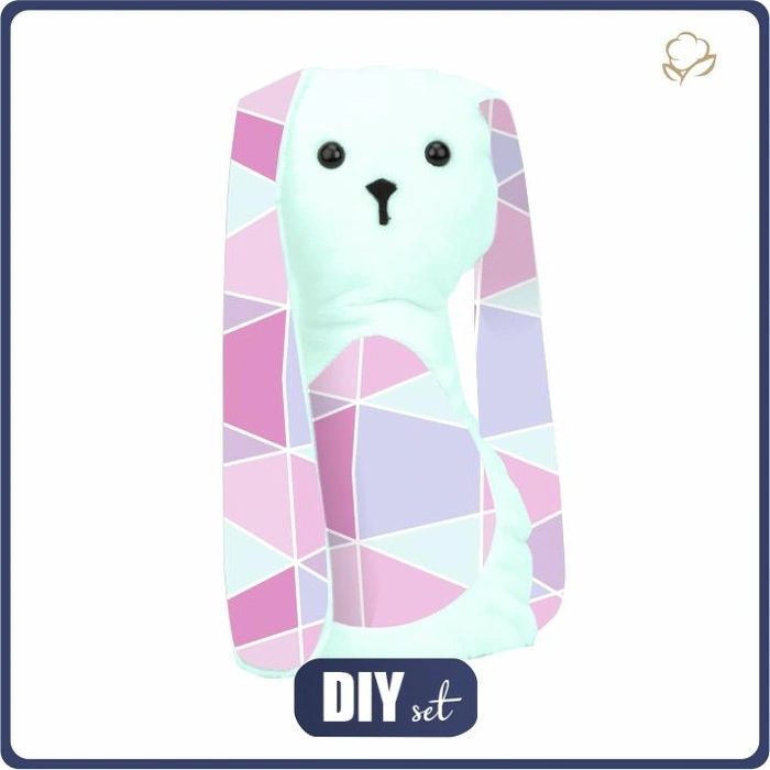 In the set you will find all necessary products for sewing a bunny mascot. All parts are packed in a cardboard box.