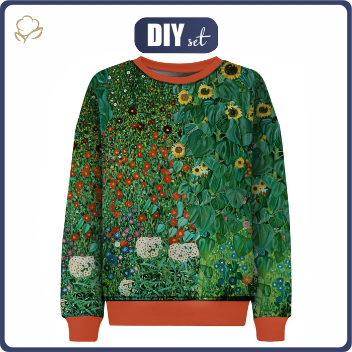 CHILDREN'S (NOE) SWEATSHIRT - FARM GARDEN WITH SUNFLOWERS (Gustav Klimt) - sewing set (110/116)