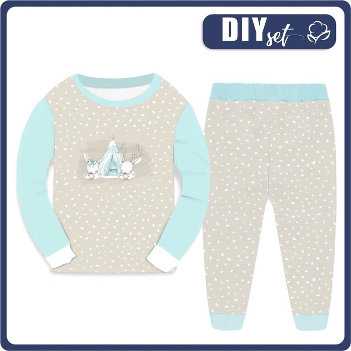 CHILDREN'S PAJAMAS " MIKI" - ANIMALS IN TIPI / WHITE TRACES / beige (MAGICAL CHRISTMAS FOREST) - Elastic cotton knit fabric (110/116)