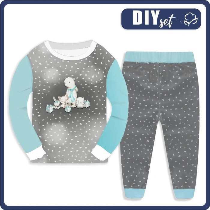 CHILDREN'S PAJAMAS " MIKI" - MAGICAL FRIENDS / WHITE TRACES / dark grey (MAGICAL CHRISTMAS FOREST) - Elastic cotton knit fabric (134/140)