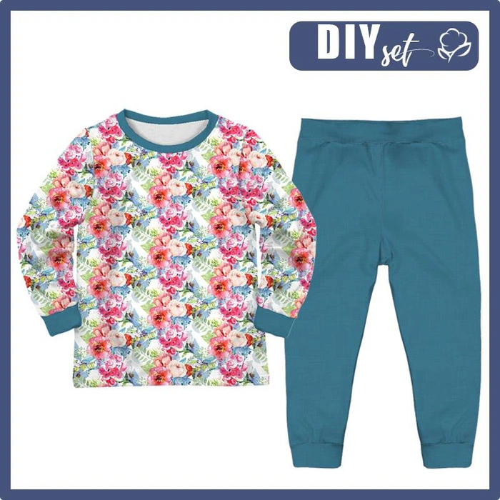 CHILDREN'S PAJAMAS " MIKI" - WILD ROSE PAT. 3 (IN THE MEADOW) - Elastic cotton knit fabric (110/116)