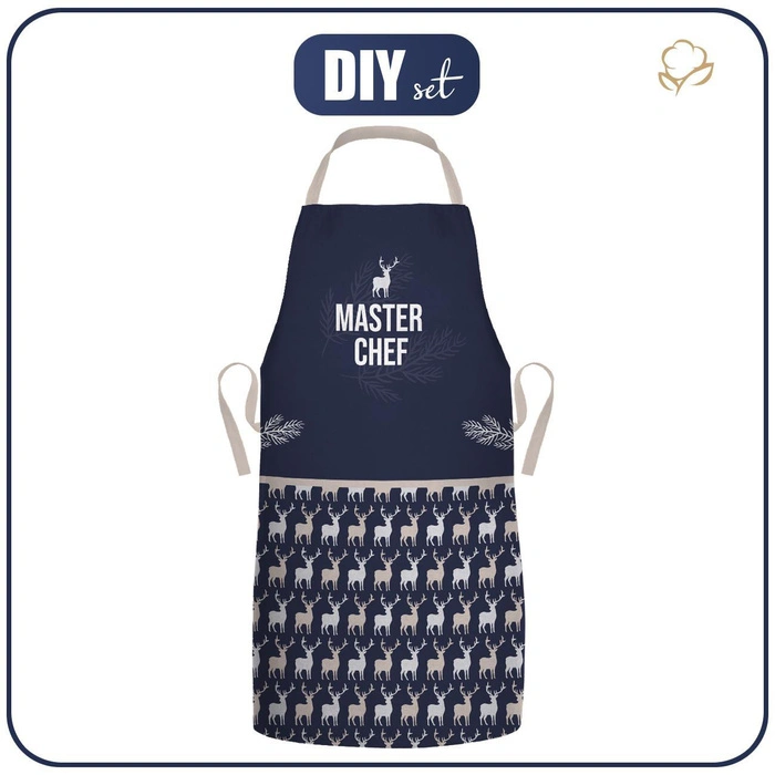 The pattern for this charming apron with Christmas graphics is printed on a lightweight, waterproof fabric with a structure that perfectly imitates the structure of natural linen. The fabric does not crease, does not bend and has a noticeable, nice-to-the-touch texture