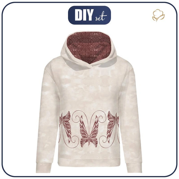 CLASSIC WOMEN’S HOODIE (POLA) - BUTTERFLY pat. 7 (GLITTER BUTTERFLIES) - looped knit fabric - M