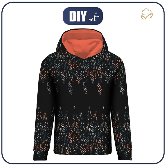 CLASSIC WOMEN’S HOODIE (POLA) - LEAVES PAT. 3 / BLACK - looped knit fabric ITY - XL