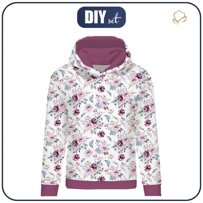 CLASSIC WOMEN’S HOODIE (POLA) - WATERCOLOR BOUQUET Pat. 2 - looped knit fabric