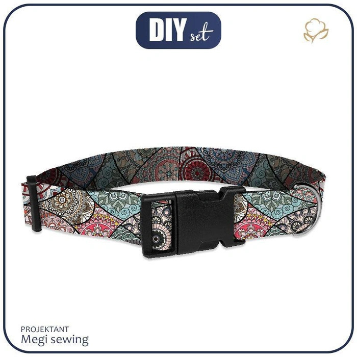 In the set you will find all necessary products for sewing a collar. All parts are packed in a cardboard box.