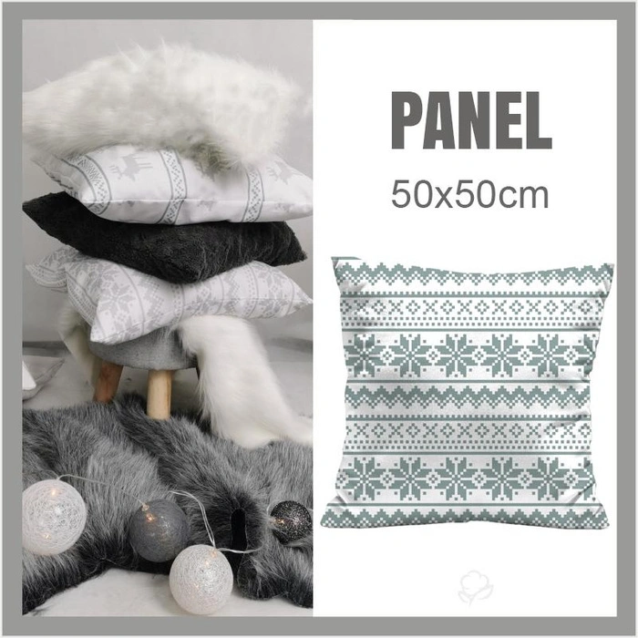 CUSHION PANEL - ALPINE FLOWERS / grey stripes