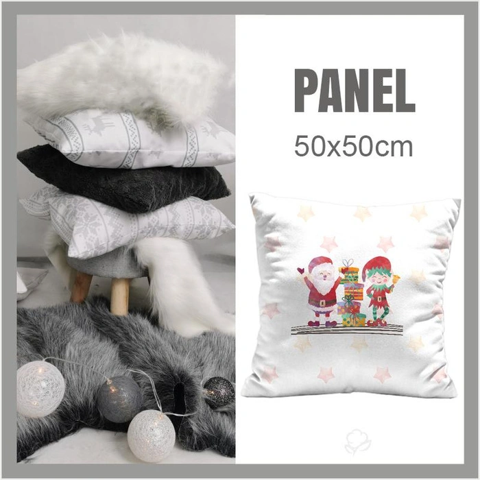 CUSHION PANEL - SANTA CLAUS AND ELF / presents (CHRISTMAS FRIENDS)