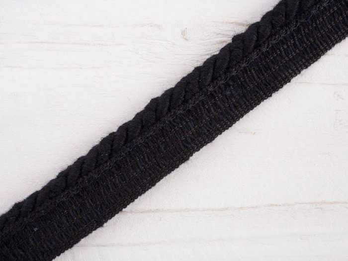 Decorative cotton flanged cord - 3 strands. You can use it mainly in the textile sector to adorn clothing for adults and children. It is also suitable to decorate clothing accessories (shawls and scarves) or housing (pillows, etc.).