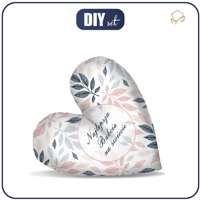 DECORATIVE PILLOW HEART - NAJLEPSZA BABCIA NA ŚWIECIE / PASTEL LEAVES