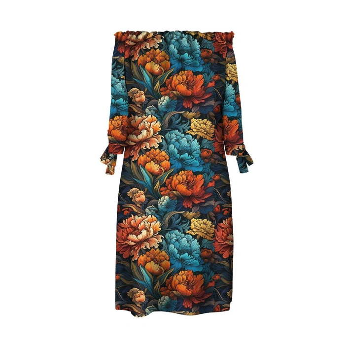 - Ready-made CARMEN DRESS pattern elements printed on SMOOTH CREPE (just cut and sew).