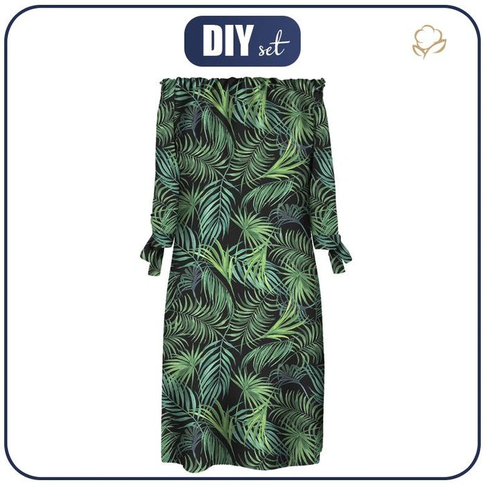 DRESS "CARMEN" - PALM LEAVES pat. 4 / black - sewing set