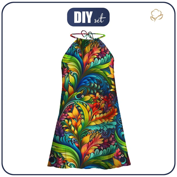 DRESS "DALIA" MINI (S-M) - COLORFUL LEAVES wz. 3 - sewing set