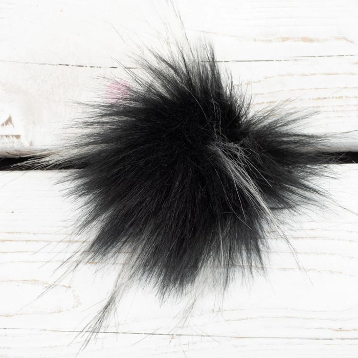 The pompom is made of ecological fur. Soft, delicate and fluffy. The cord makes it easier to fasten the pompon.