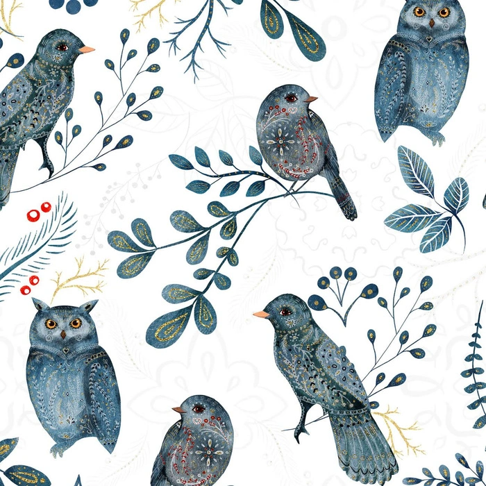 FOLK BIRDS pat. 2 (FOLK FOREST) - Woven Fabric for tablecloths