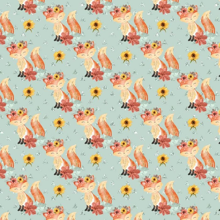 Sewing fabric with the FOXES MIX 2 / mint (FOXES AND PUMPKINS) printed motif