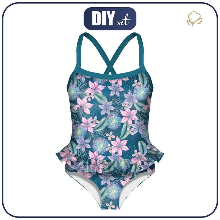 In the set you will find all necessary products for sewing girl's swimsuit. All parts are packed in a cardboard box.