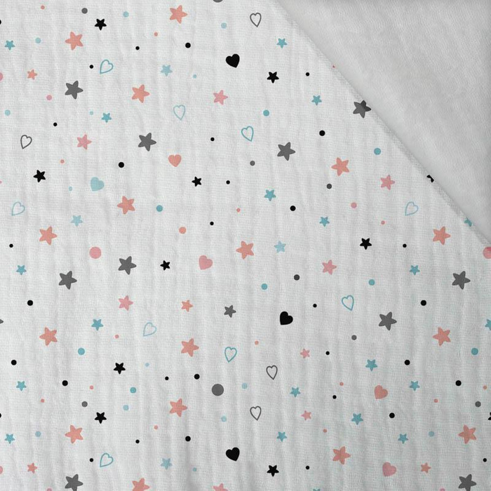 STARS AND HEARTS (PASTEL SKY) - Cotton muslin