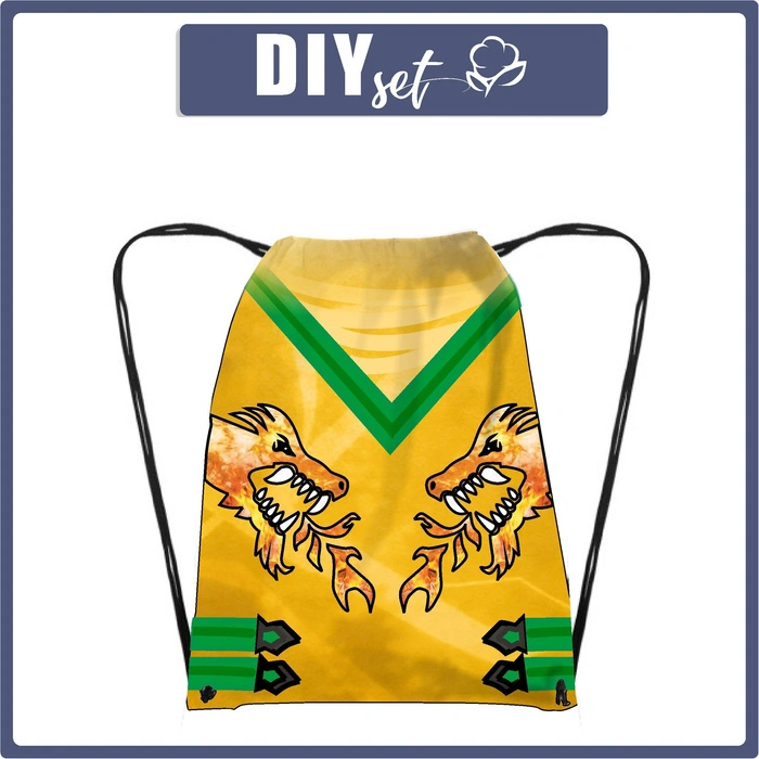 The DIY set includes the materials necessary to sew a gym bag from one panel.