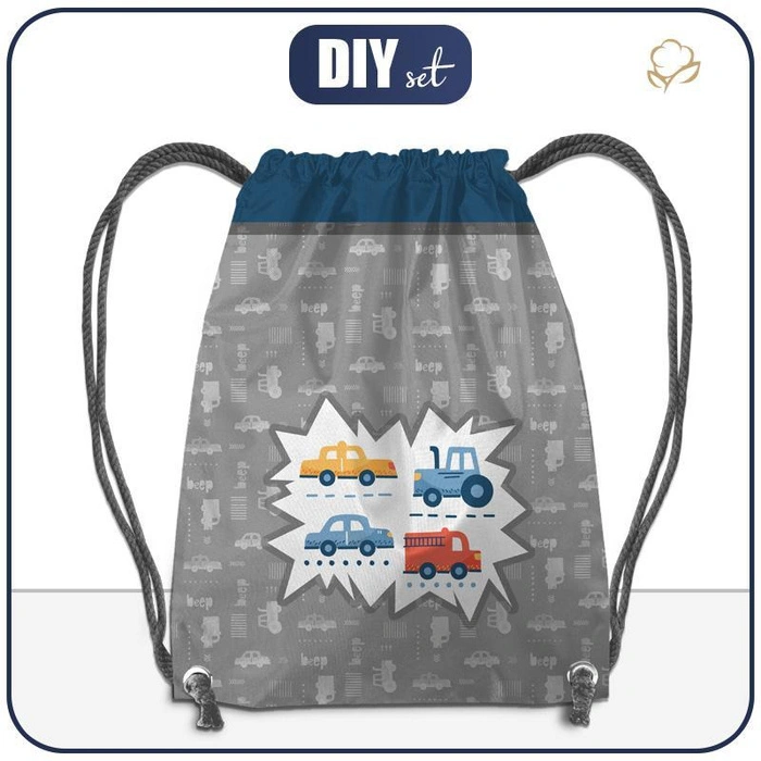 GYM BAG - VEHICLES pat. 2 / white (ADVENTURE BEGINS) - big