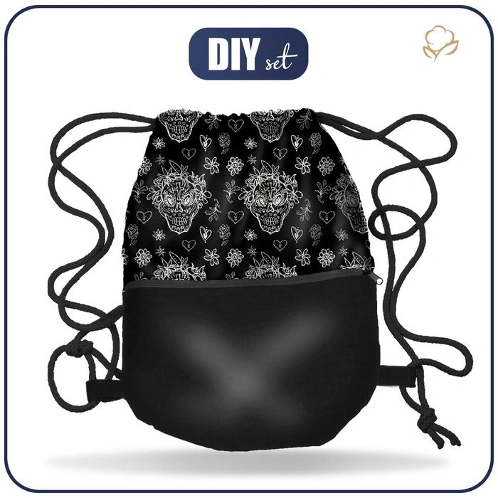 GYM BAG WITH POCKET - SKULLS CONTOUR / garland (DIA DE LOS MUERTOS) - sewing set