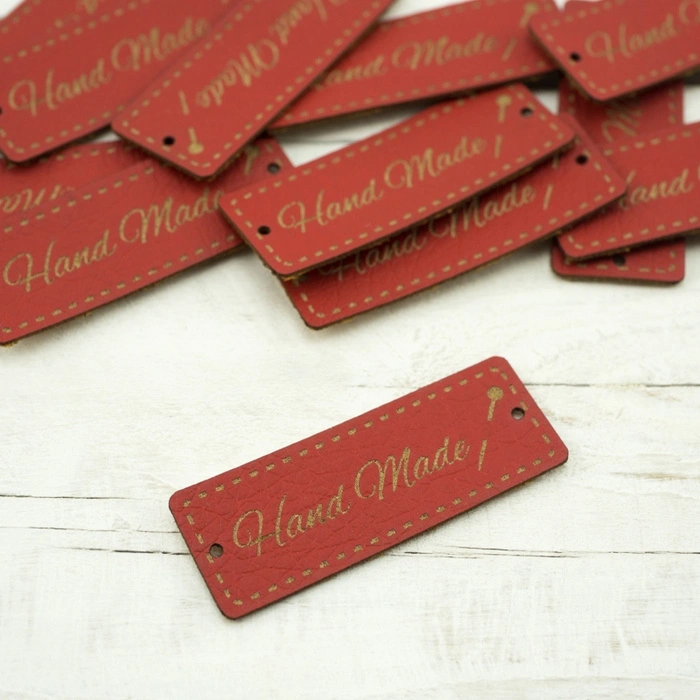 Decorative Cloting Label with sign Hand Made. The label is made of eco leather and has holes on sides for easy attachement.