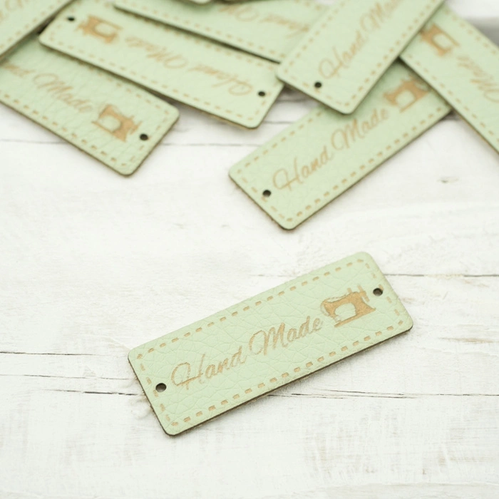 Decorative Cloting Label with sign Hand Made. The label is made of eco leather and has holes on sides for easy attachement.