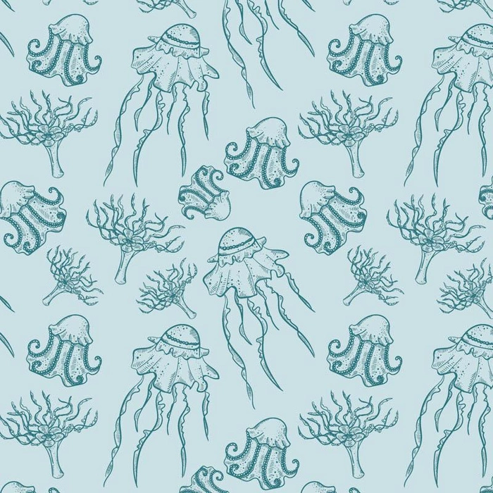 Jellyfish and corals are a pattern for fans of the color blue. It will work both on everyday clothes and clothing accessories.