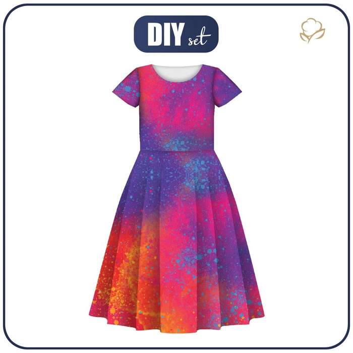 KID'S DRESS "MIA" - COLORFUL SPECKS - sewing set (146/152)
