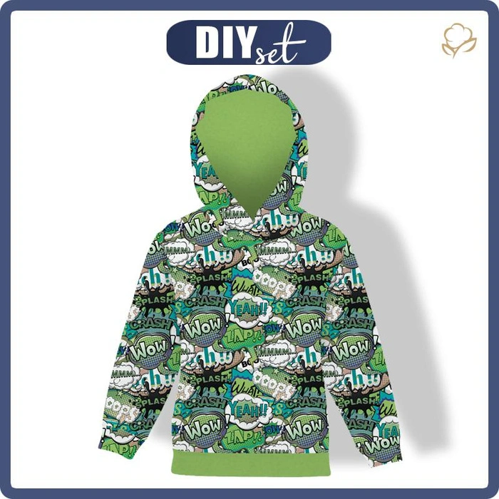 KID'S HOODIE (ALEX) - COMIC BOOK (green - blue) - sewing set