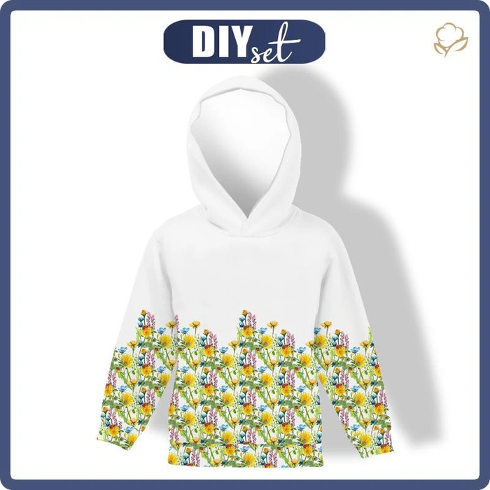 In the set you will find all necessary products for sewing a kid’s hoodie.