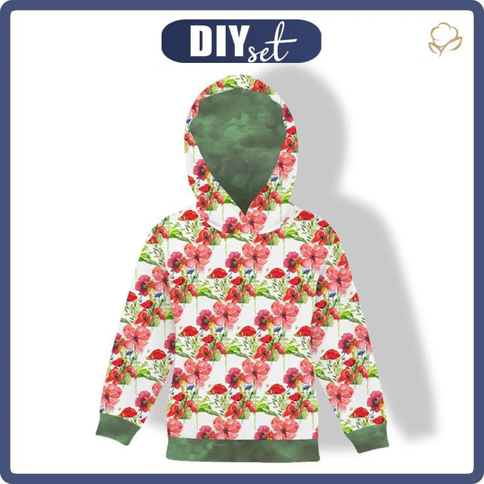 KID'S HOODIE (ALEX) - POPPIES PAT. 2 (IN THE MEADOW) - looped knit fabric (98/104)