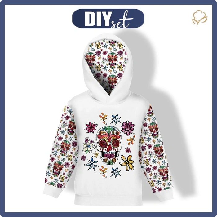 KID'S HOODIE (ALEX) - SKULLS pat. 2 / white (DIA DE LOS MUERTOS) - sewing set