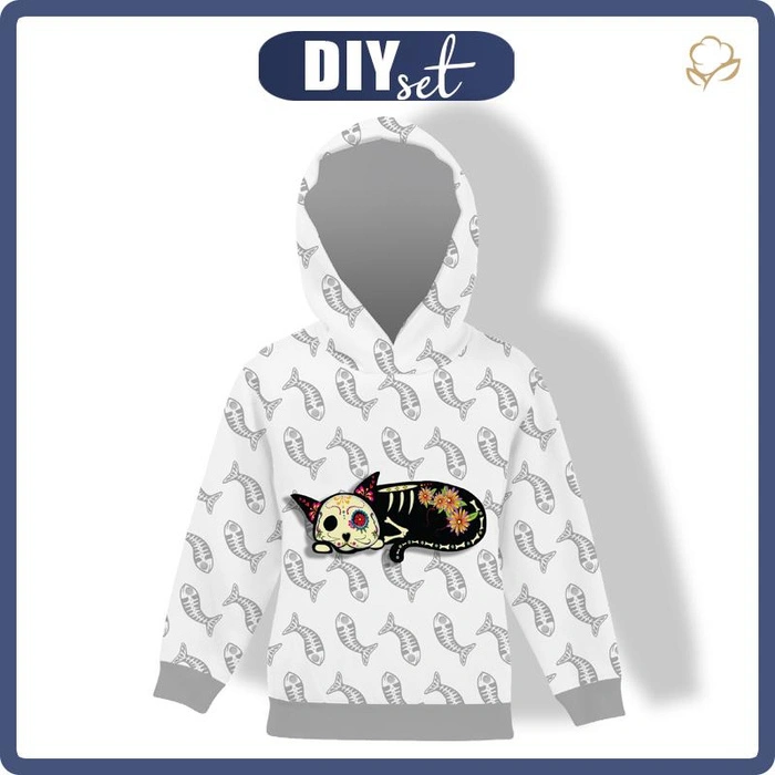KID'S HOODIE (ALEX) - SLEEPING CAT CARLA (DIA DE LOS MUERTOS) - looped knit fabric (98/104)