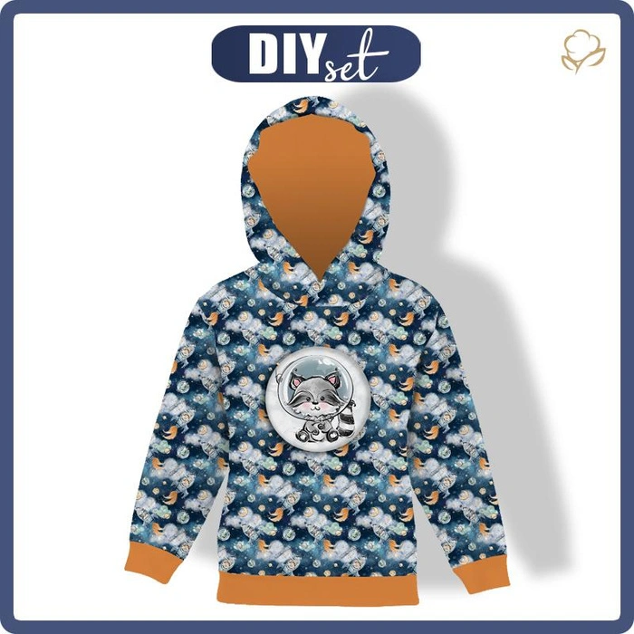KID'S HOODIE (ALEX) - SPACE CUTIES pat. 1 (CUTIES IN THE SPACE) - looped knit fabric (122/128)