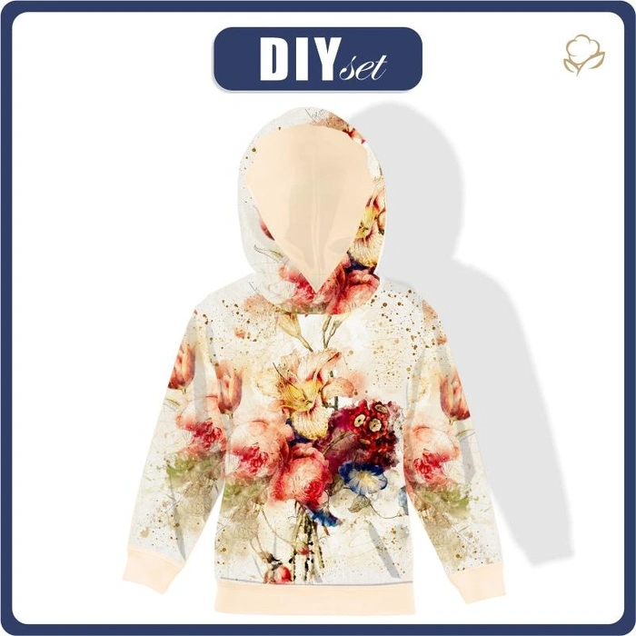 KID'S HOODIE (ALEX) - WATERCOLORS FLOWERS Pat. 5 - looped knit fabric (98/104)