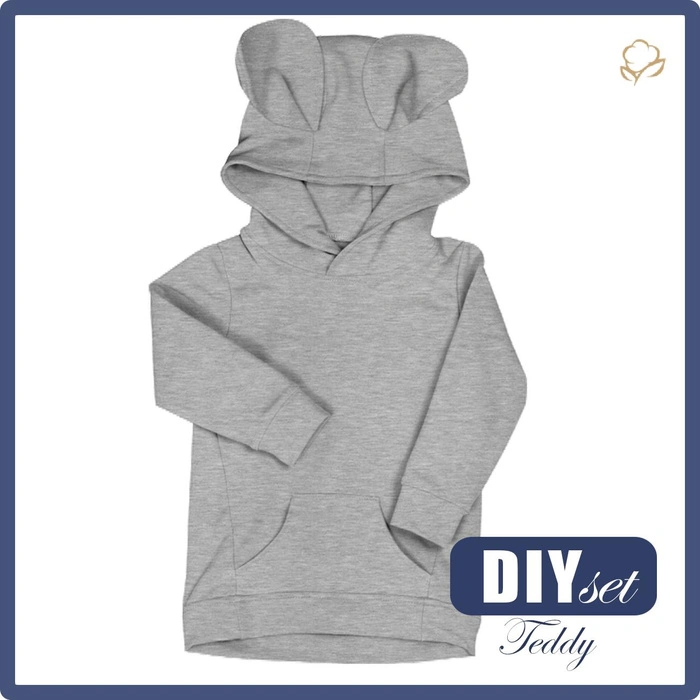 KID'S HOODIE TEDDY (PARIS) - MELANGE LIGHT GREY - sewing set (74/80)